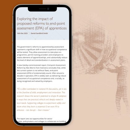 Gatsby’s response to the UK Government’s 2017 Industrial Strategy Green Paper, urging stronger investment in technical education, better funding for skills training and action to address technician shortages.